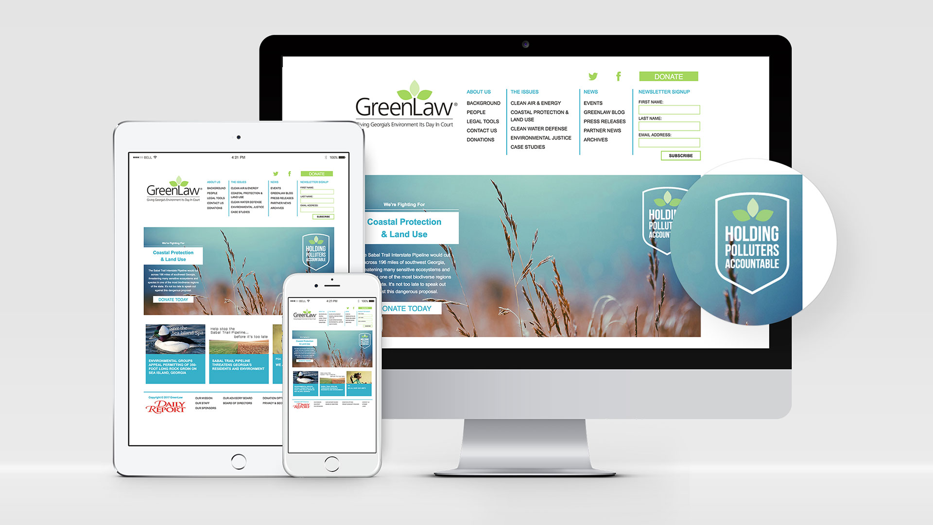 GreenLaw provided pro bono legal and technical assistance to environmental organizations and community groups throughout Georgia. Greenlaw invited Good Thinking to help refresh its brand with new videos, portraits, a website, and a range of print promotional materials.